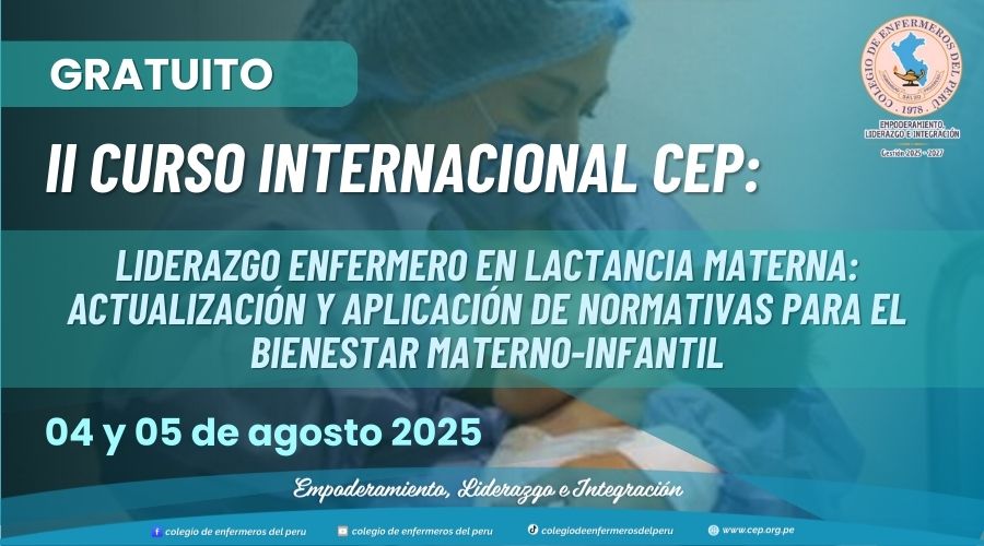 Lima, miércoles 6 de agosto de 2025. Con motivo de la Semana Mundial de la Lactancia Materna, el Colegio de Enfermeros del Perú (CEP), a través de su Consejo Directivo Nacional, realizó con gran éxito el II Curso Internacional “Liderazgo Enfermero en Lactancia Materna: Actualización y aplicación de normativas para el bienestar materno-infantil”, los días […]
